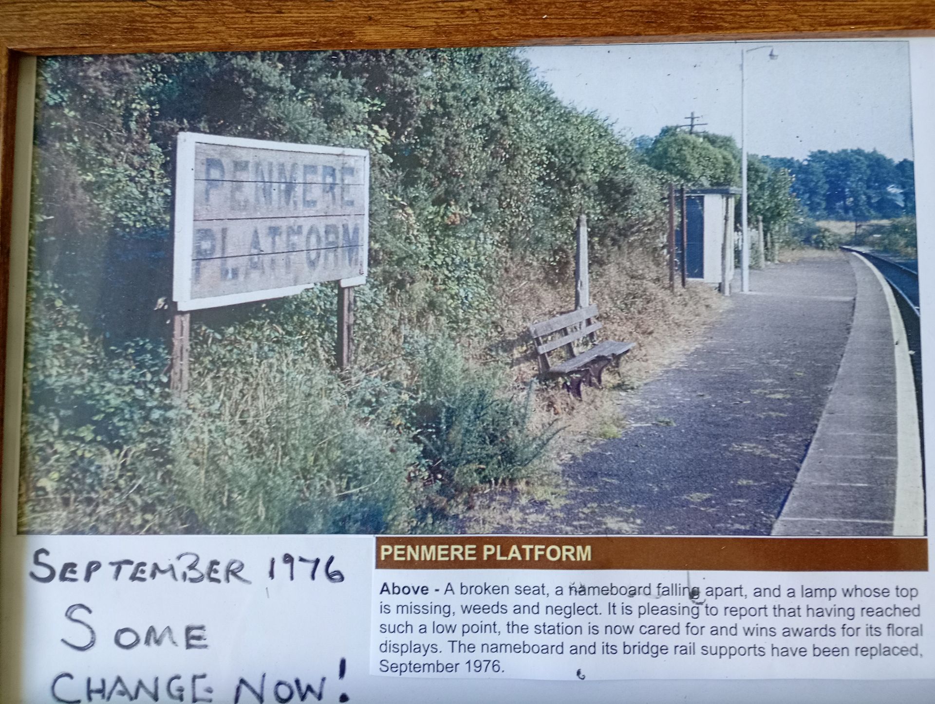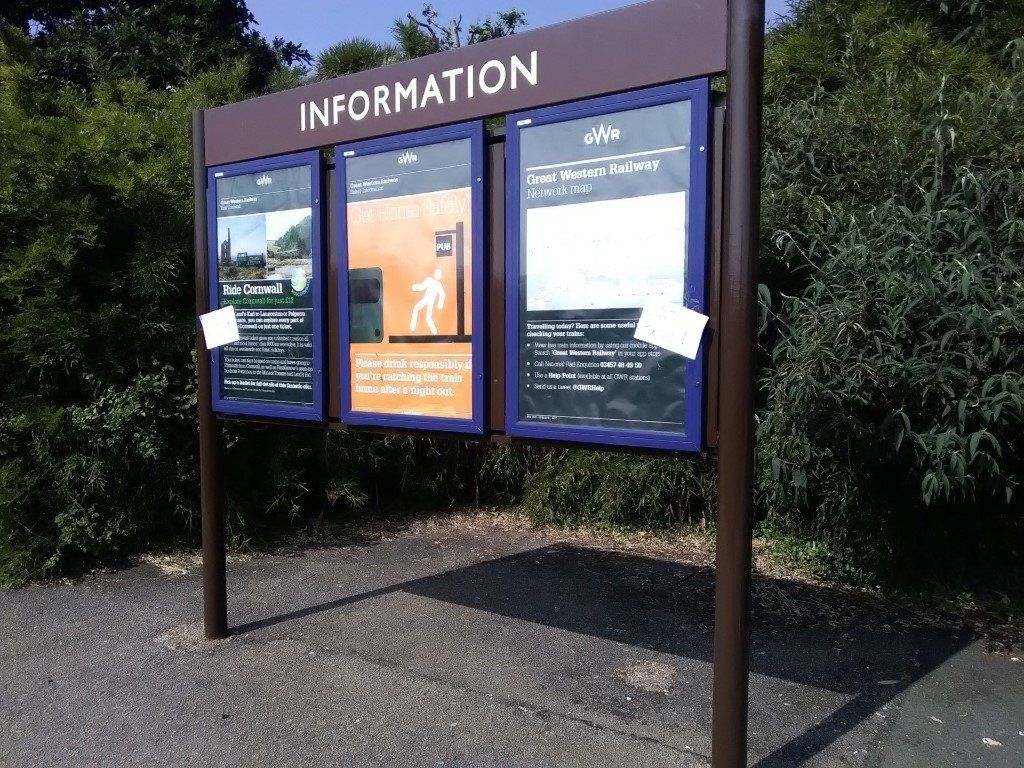 The information board on the platform now freshly painted and looking splendid in "heritage" colours.