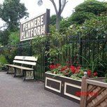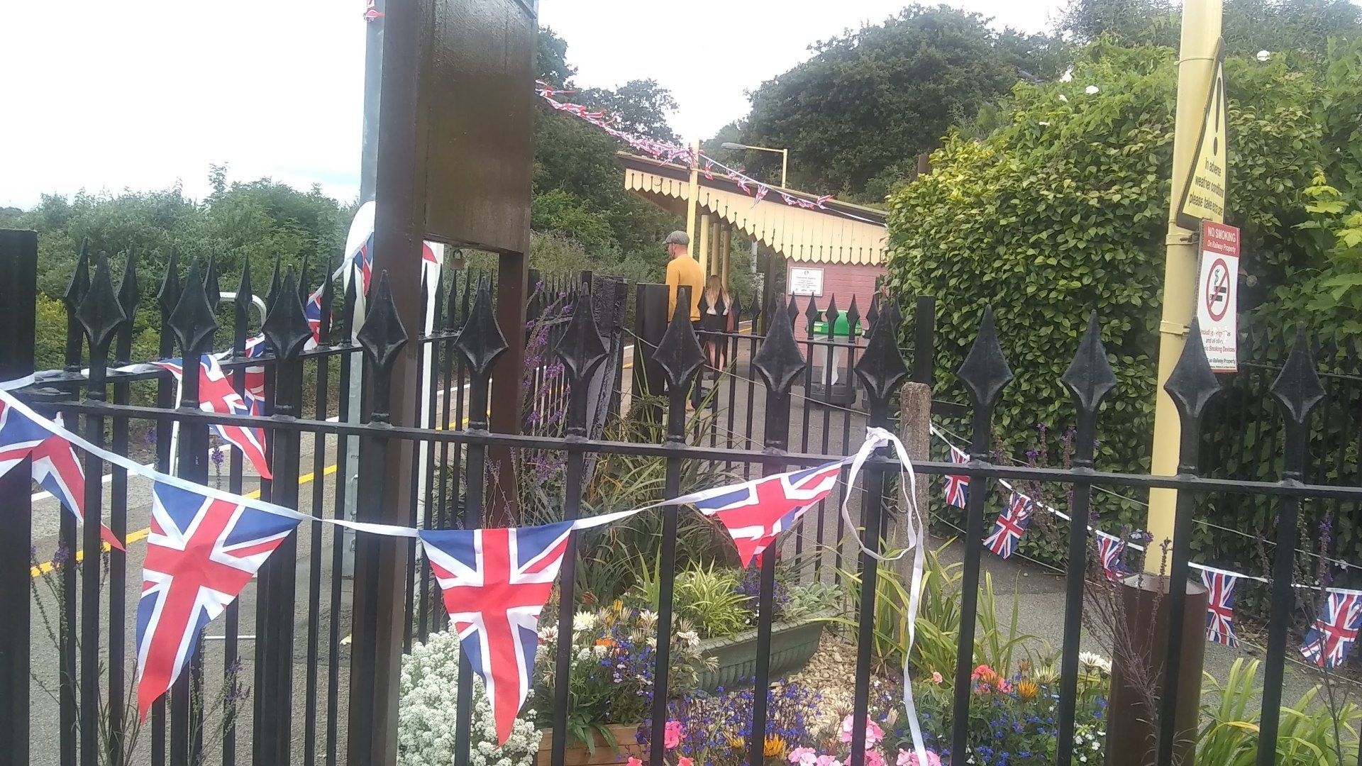 Our celebration banner! Below is the dedicated rose bed to Leonard Grose, a former railwayman at the station, who was also the award winning gardener at that time.