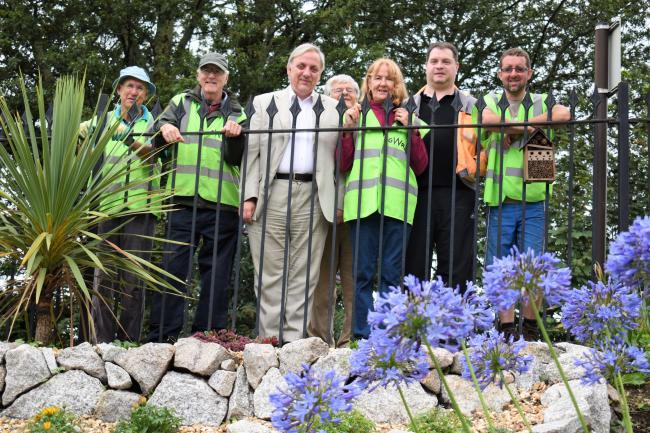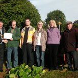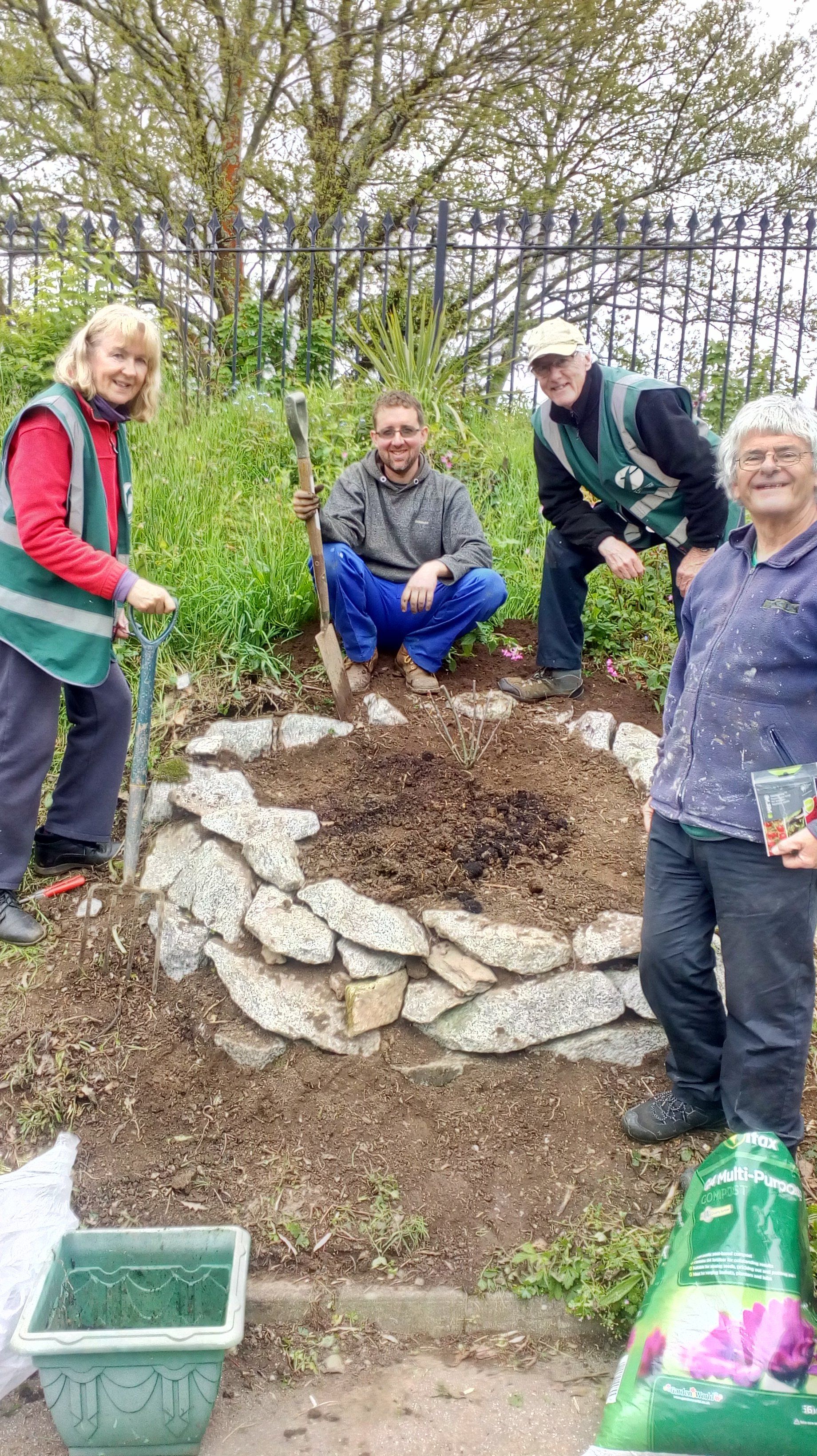 Rose bed successfully planted up dedicated to Leonard Grose, a former British Railway employee at Penmere who previously created the award winning garden in the 1950's. His granddaughter Julia, on the left enjoyed her visit to us. L-R: Julia, Josh, Steve, Daniel, John and Phyllis