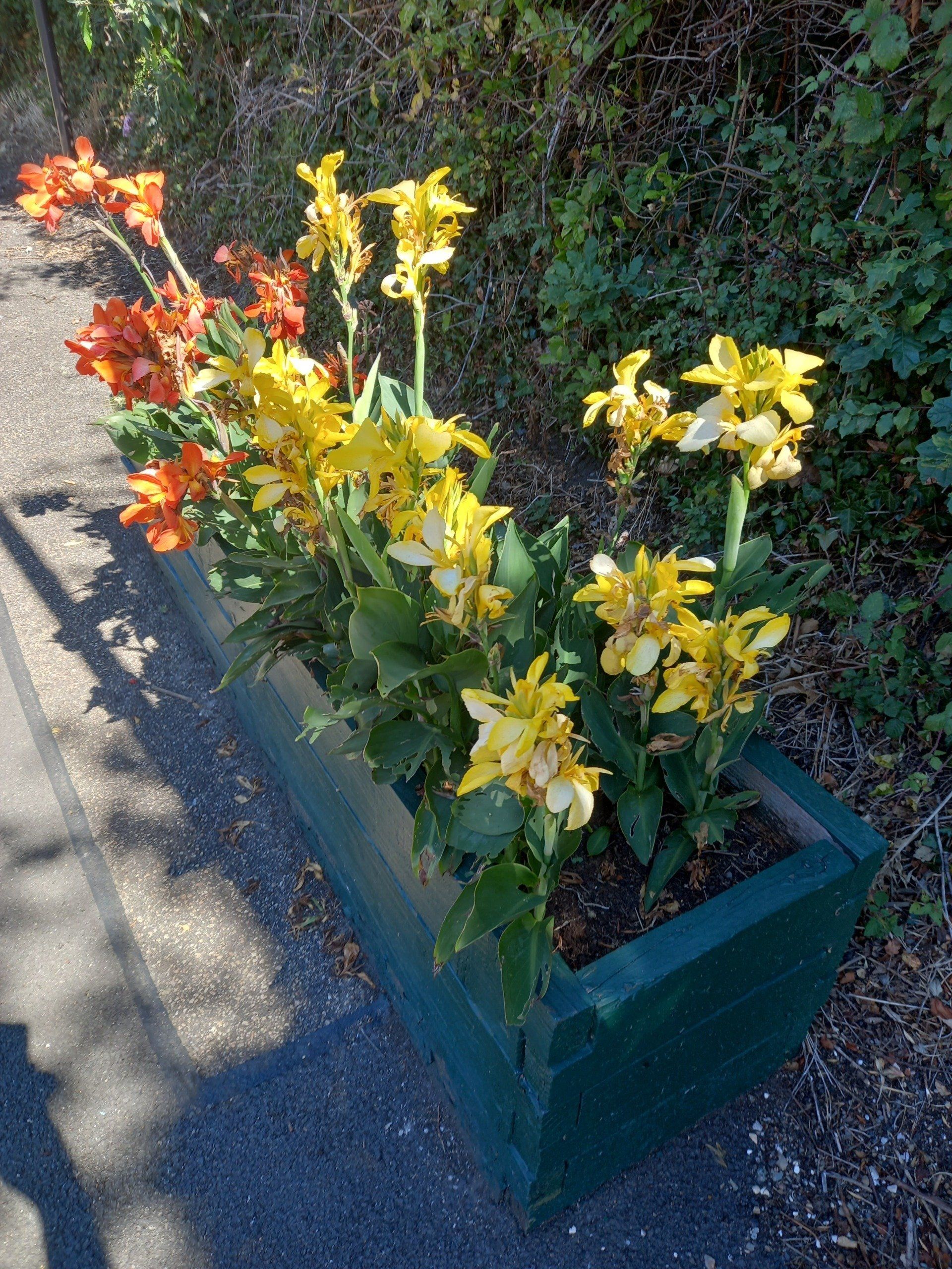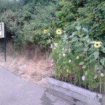 Late summer and the colourful tubs look attractive to passengers alongside the Station footpath.
