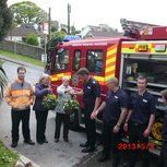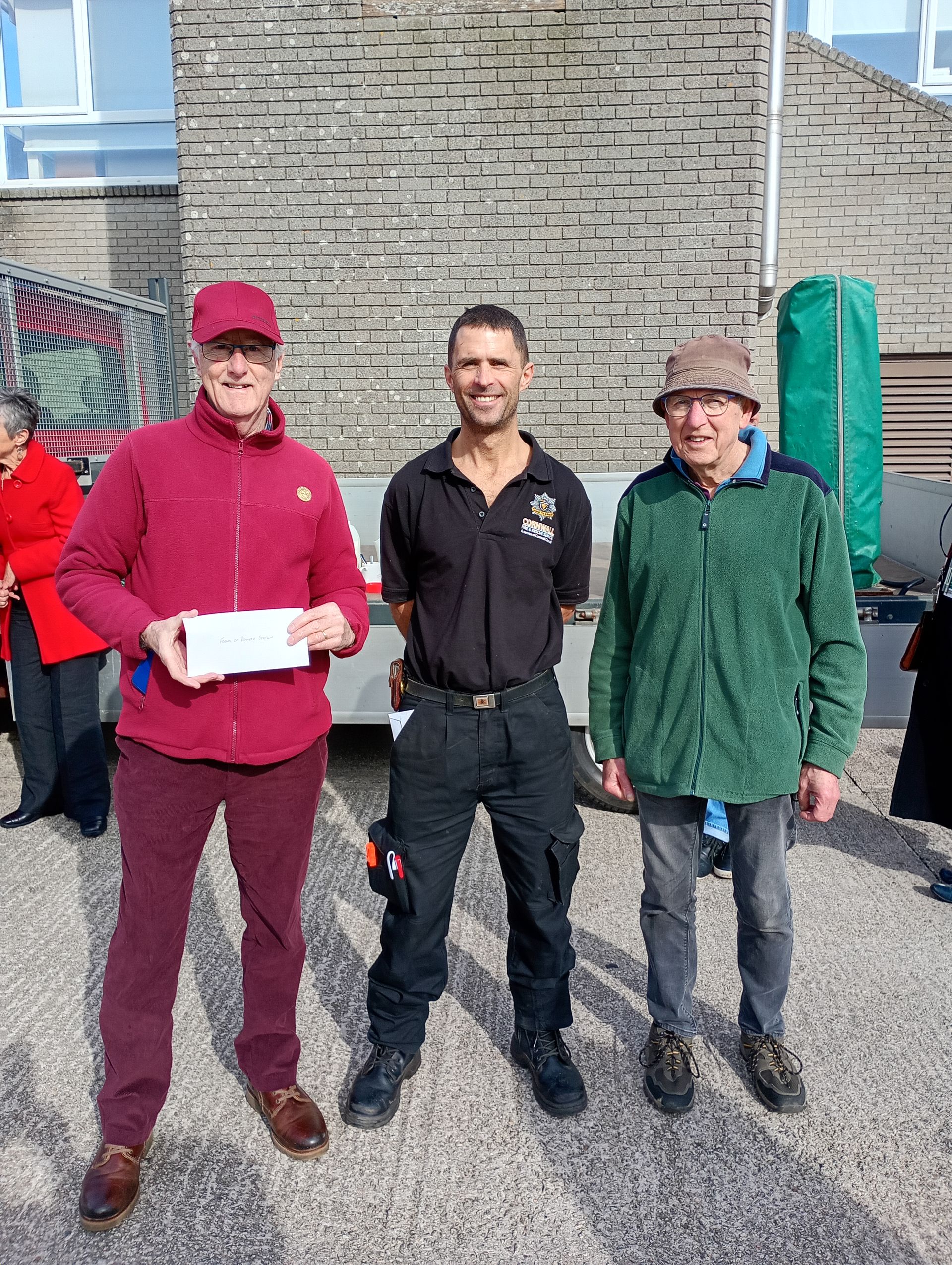 A pic of Dave and Steve receiving a cheque on behalf of the "Friends" one of many good causes who also received cheques as part of the Falmouth Fire Brigade firework display