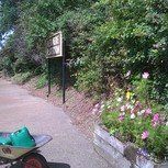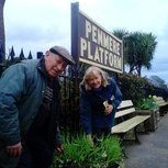 Planting "Len's" rose! A bush rose dedicated to Station Booking Clerk Len Grose 1945 to 1968. Planted up by "Friends" Phyllis, Daniel, Steve and John.