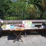 Our new banner, along with 120 colourful postcards, showing seven views of the station and plants.This has been funded by a grant from the Community Rail Network, Small Grants Fund.