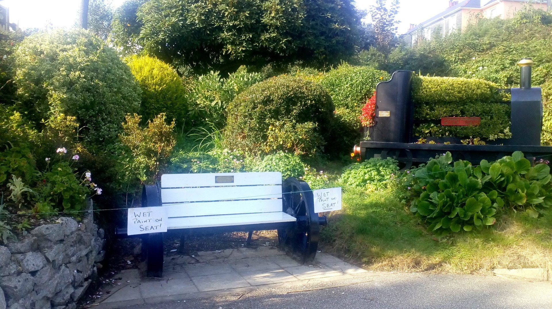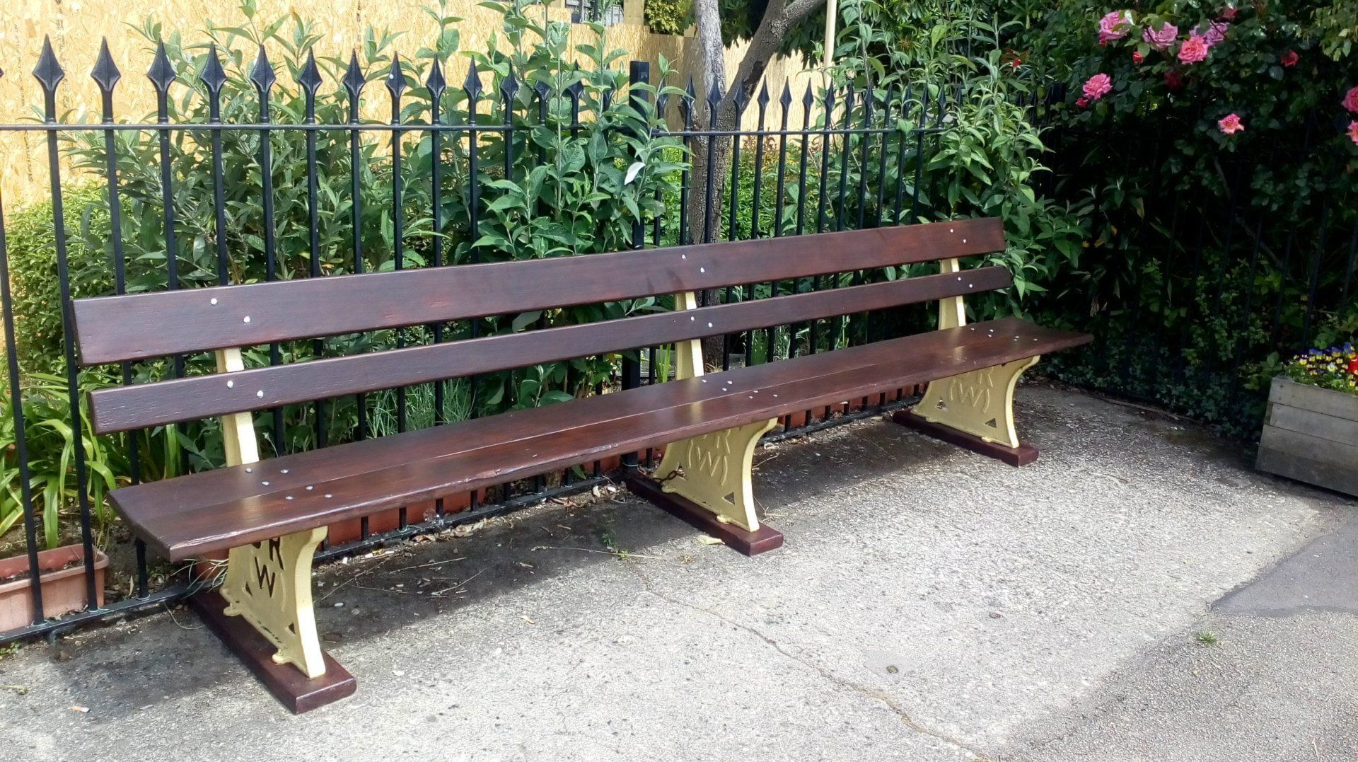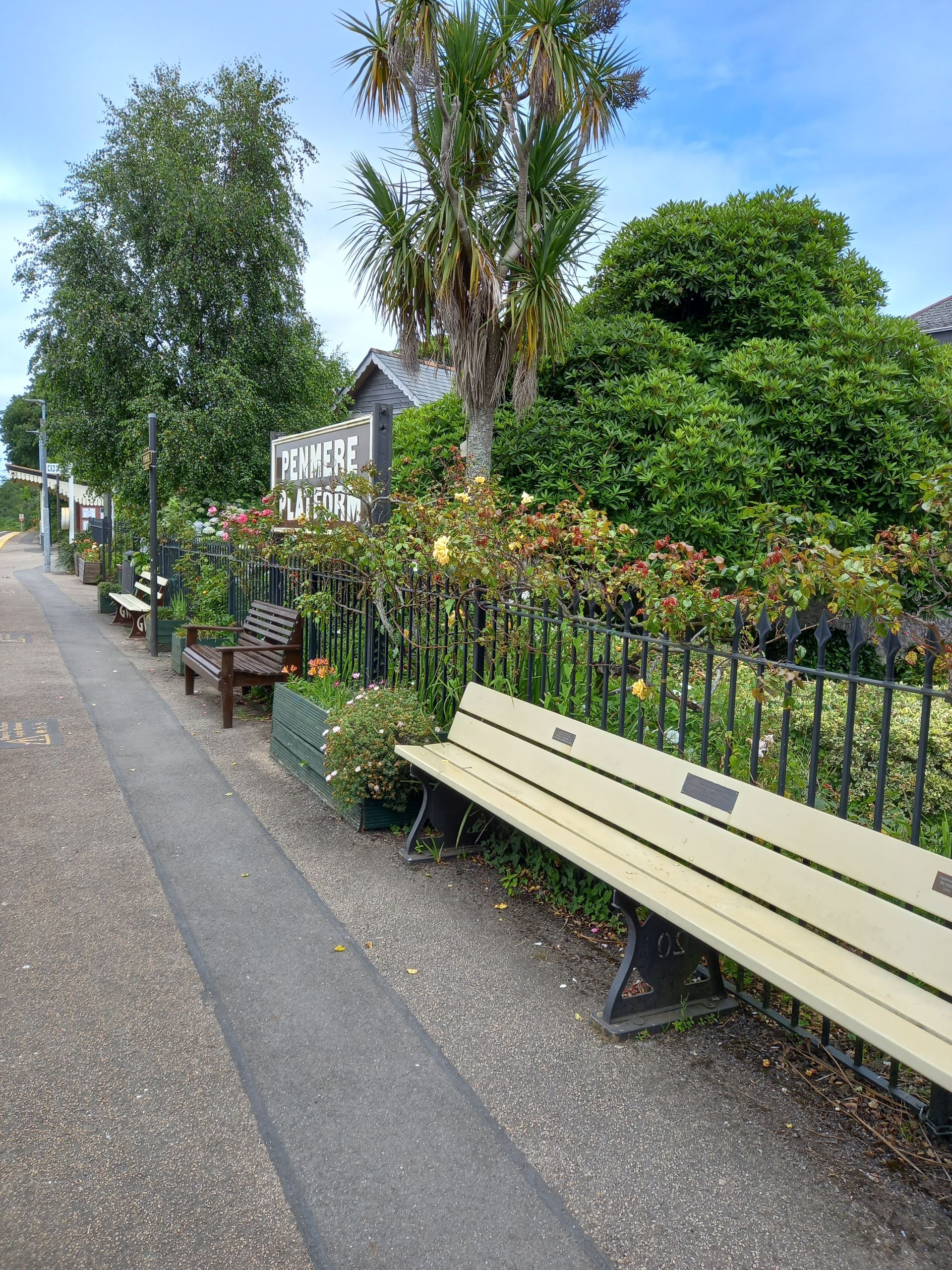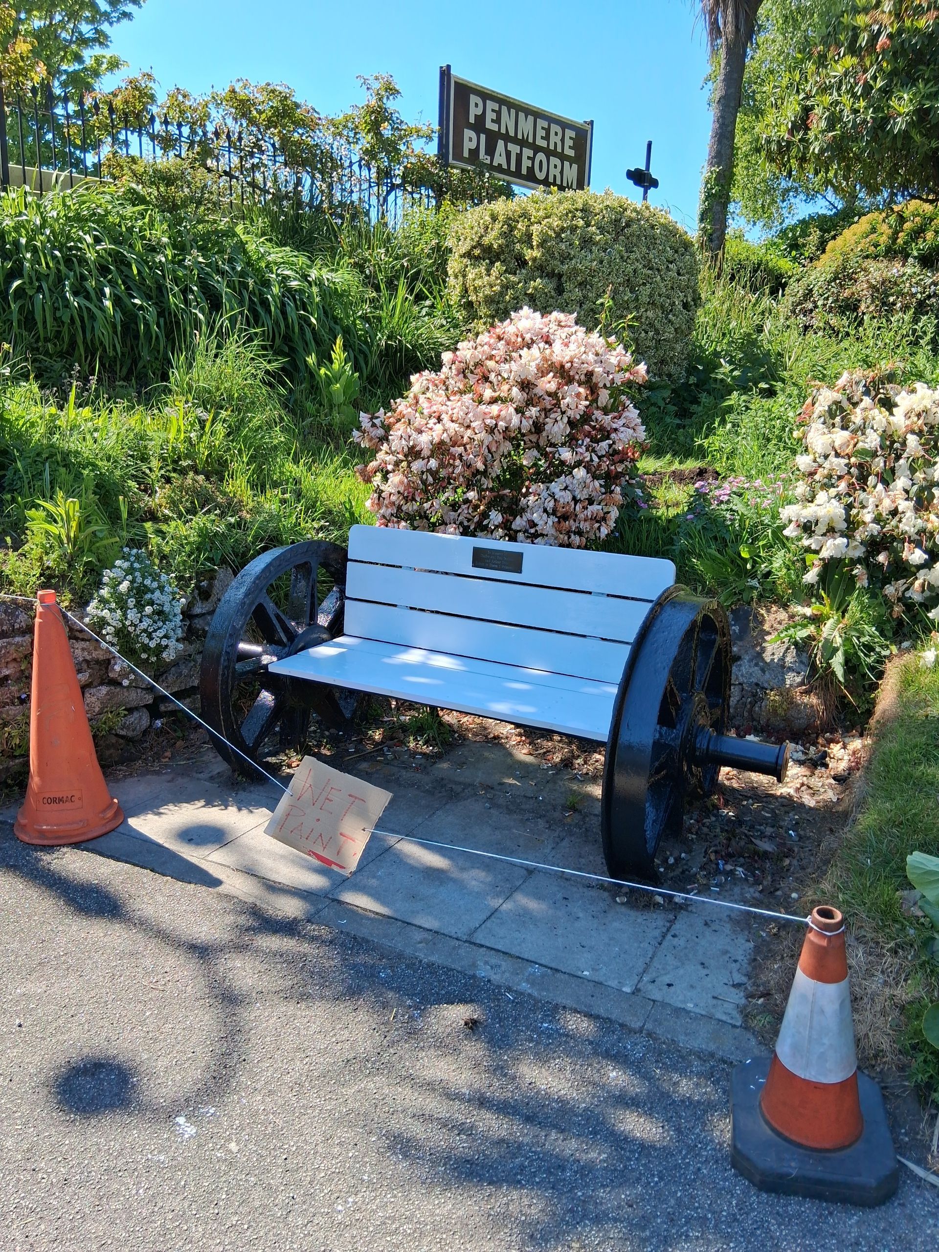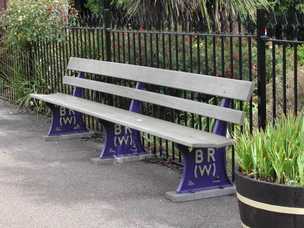 A temporary replacement wooden bench whilst one of our original GWR finialled ones is being refurbished, returning soon.