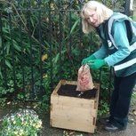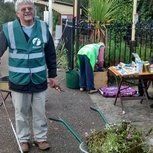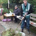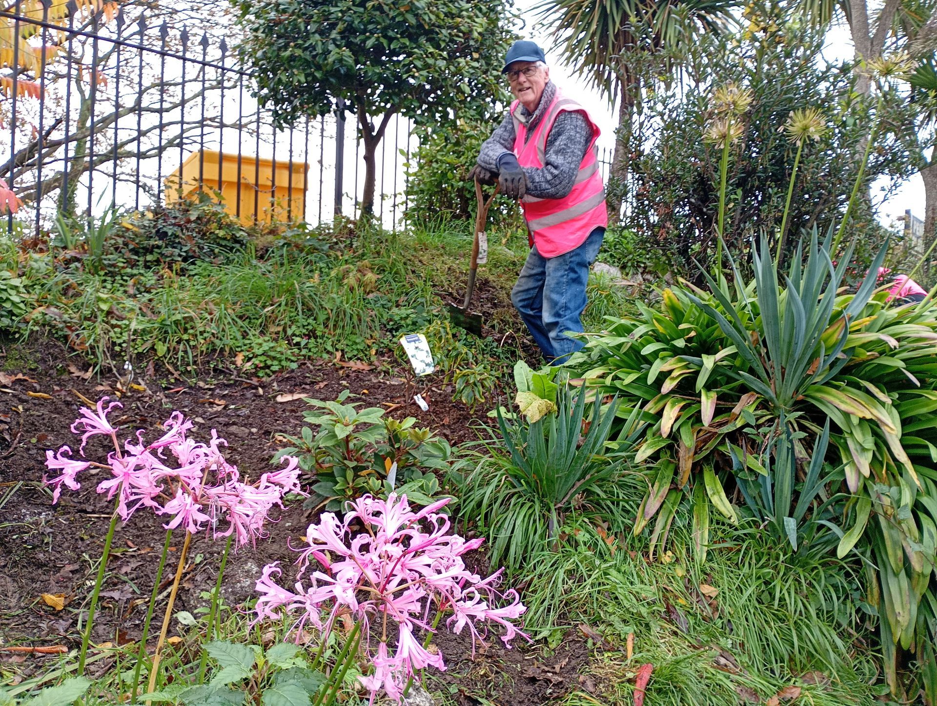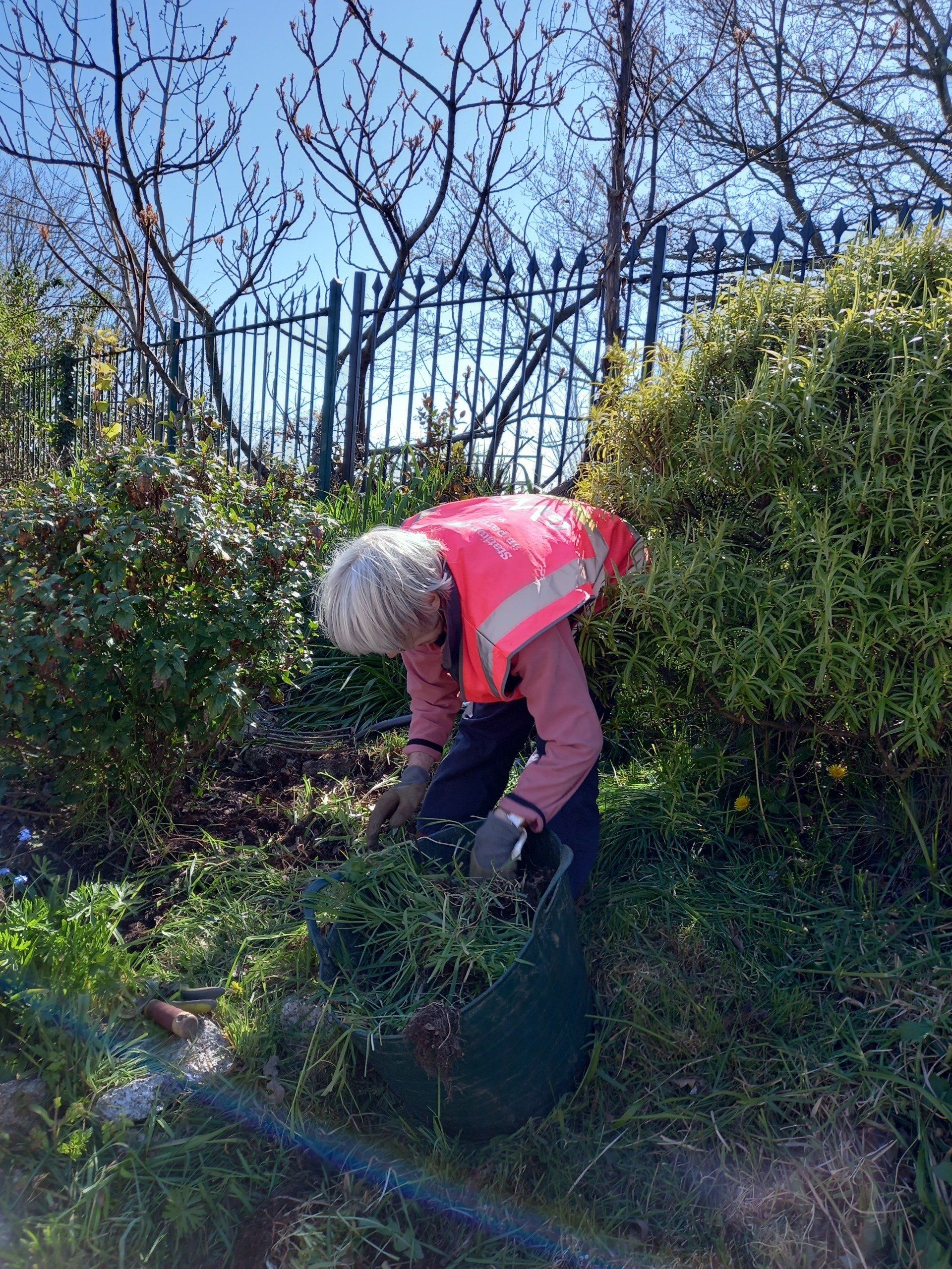Phyllis preparing site for new bed commemorating our early pioneer Member, Brian Philpotts.