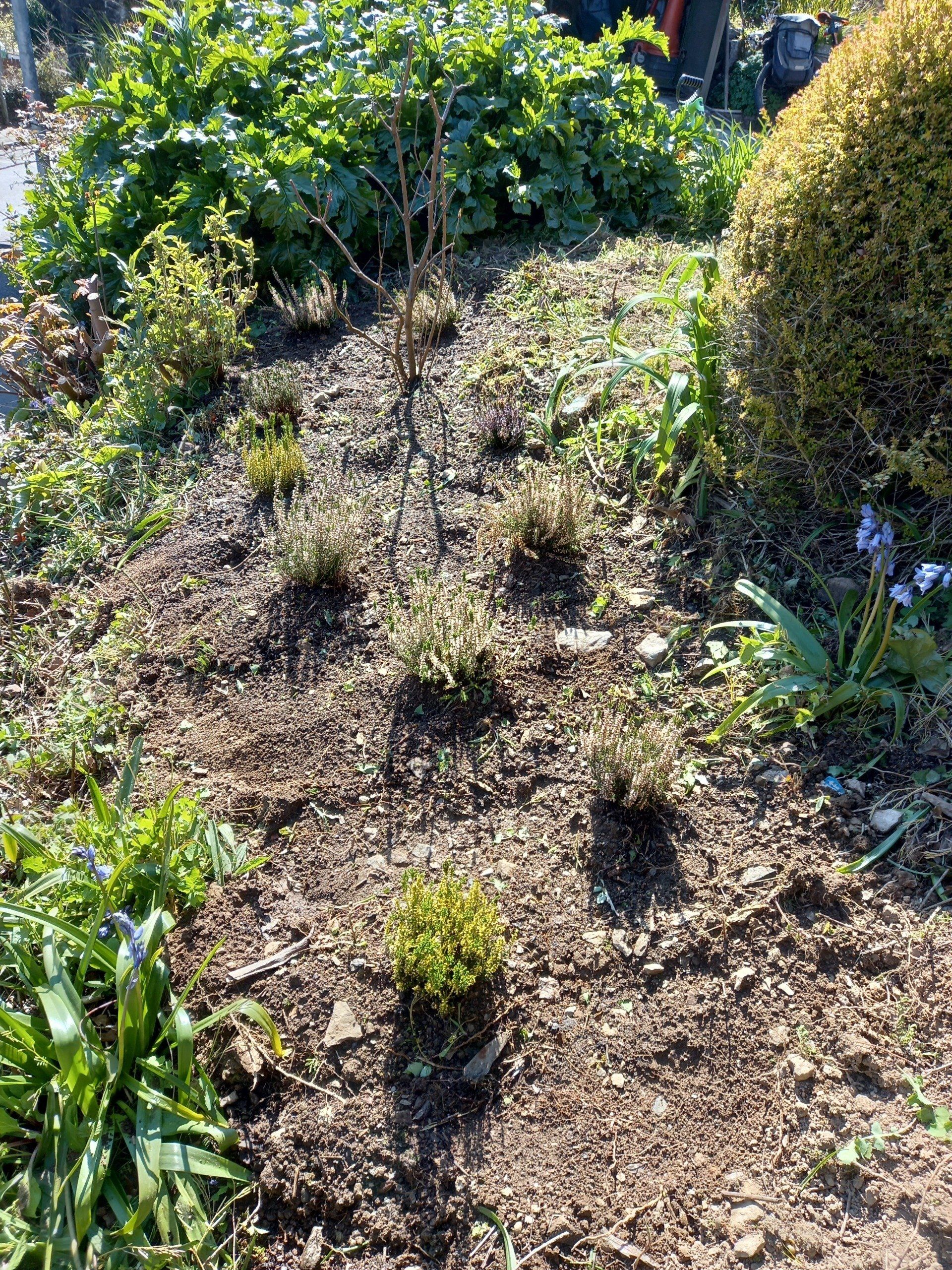 Young heathers planted up on the car park bank, hopefully to add a splash of colour.