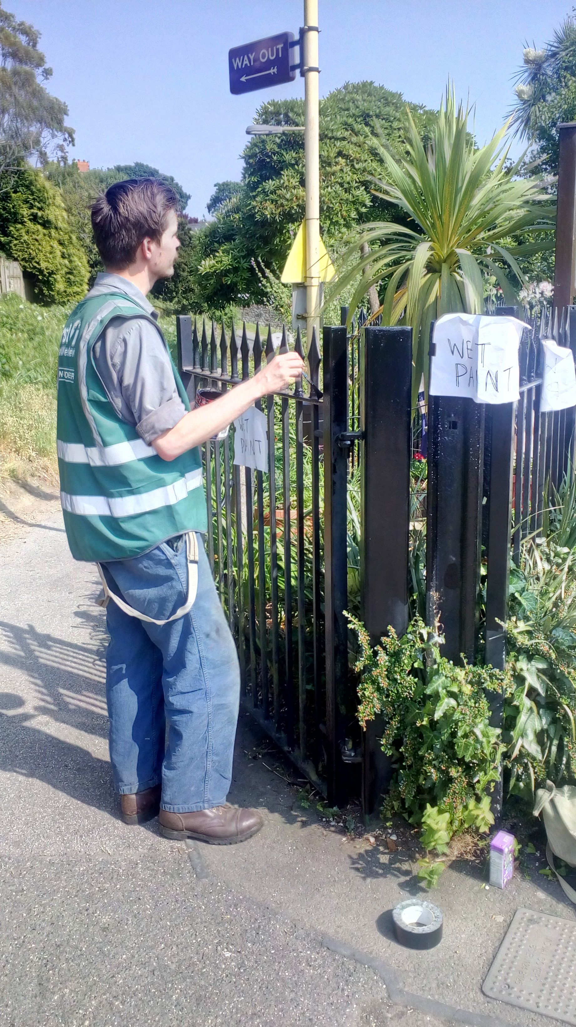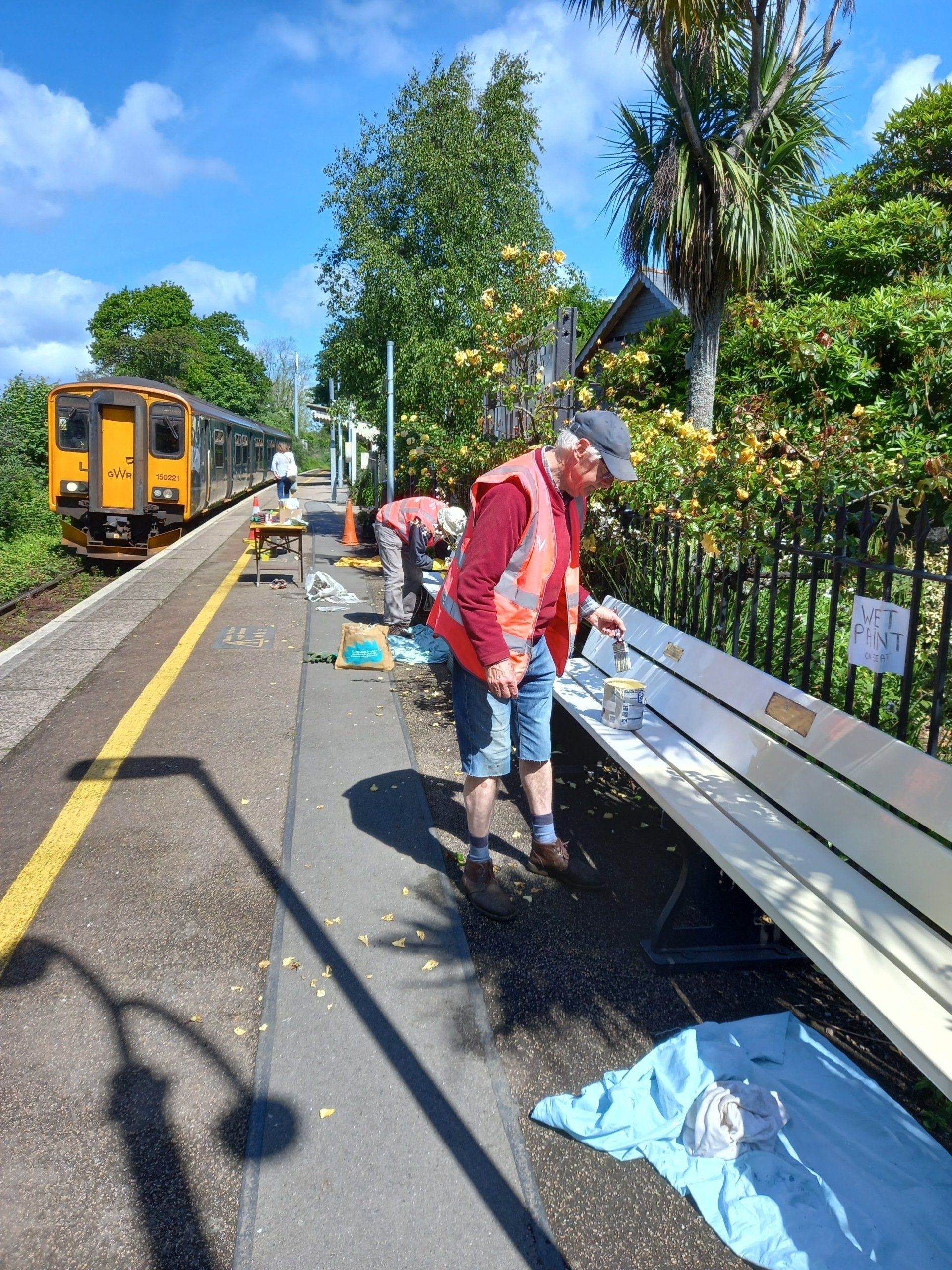Station gate receiving a much needed coat of black paint by Josh, ready for RHS judging in July.