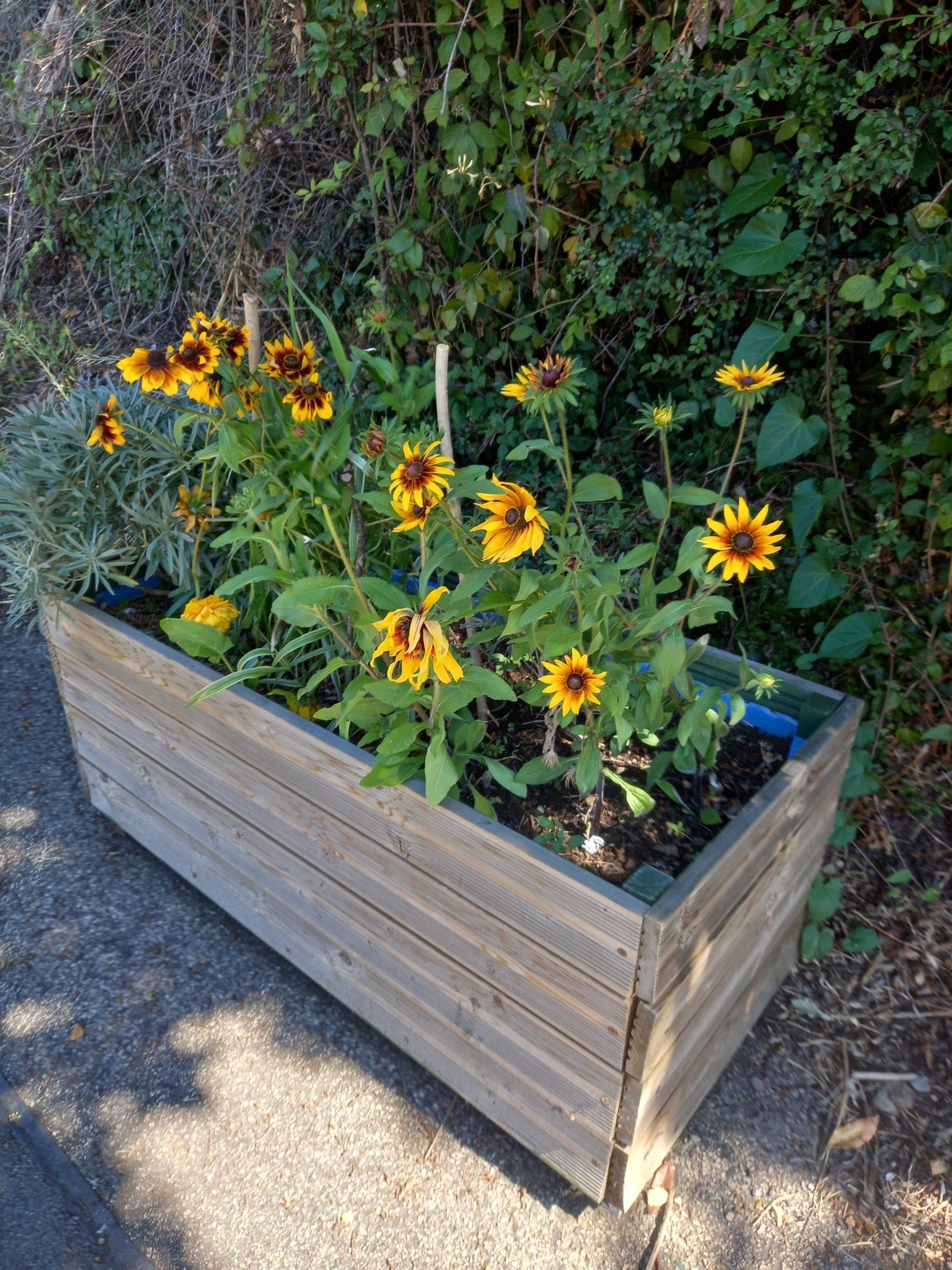 One of the three new planting tubs which was purchased through a large Communitywide grant by Falmouth Fire Station. Monies handed out after the 2024 Falmouth firework display. Many thanks for choosing our group!
