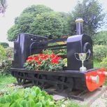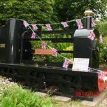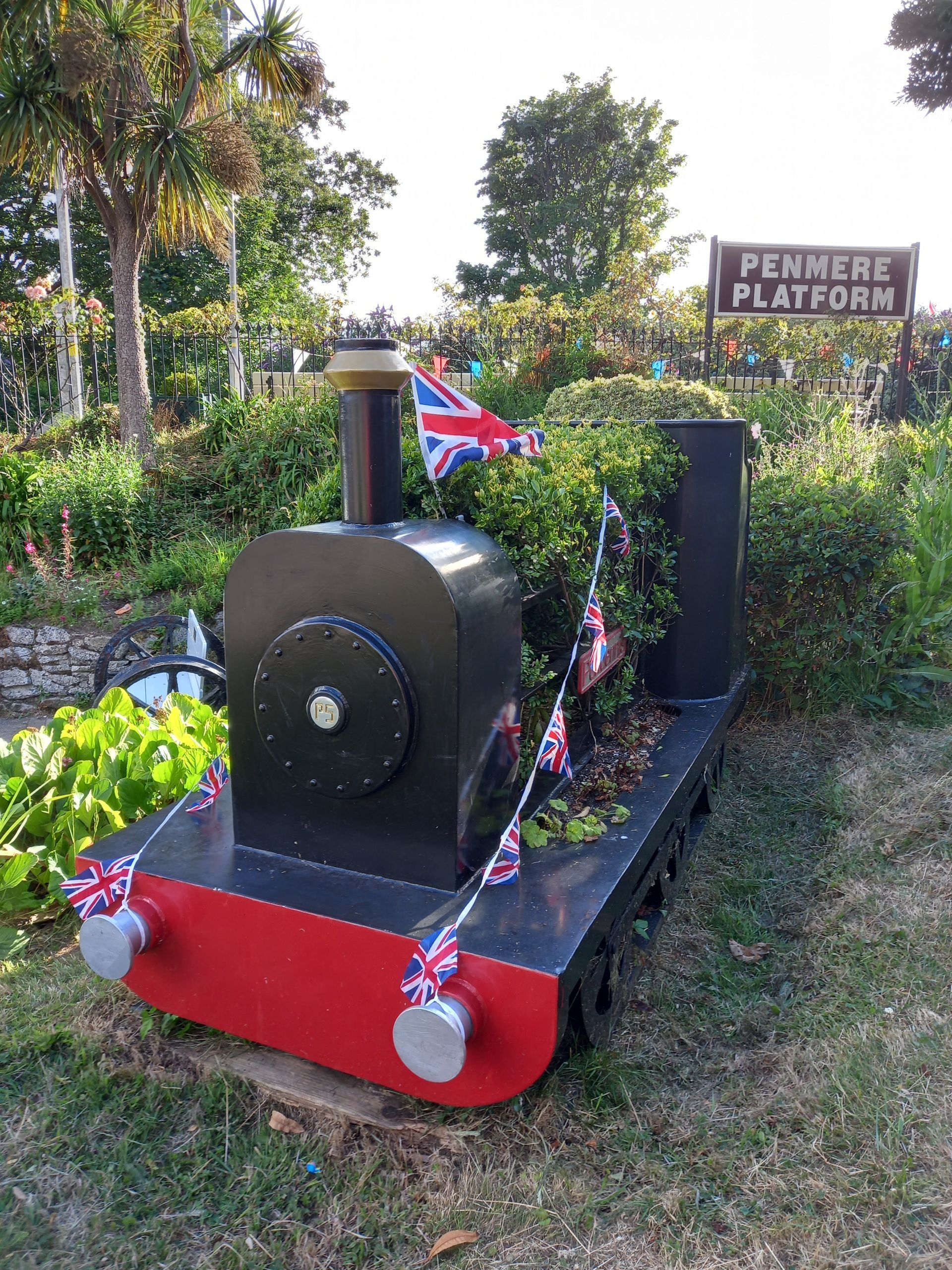 Our garden engine "Pendennis" dressed in colourful bunting to celebrate Armed Forces Day.
