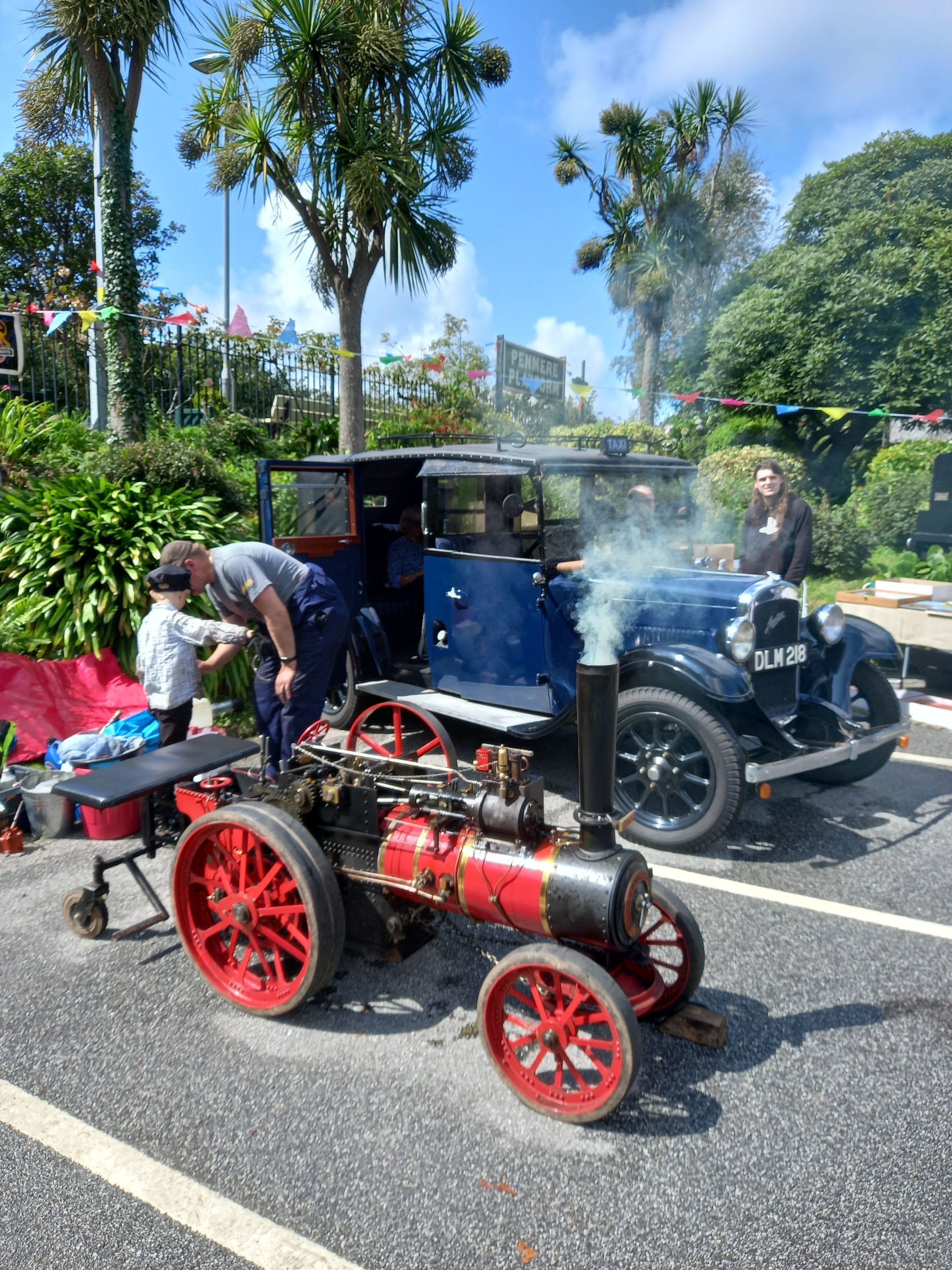 "Puffer" the mini traction engine alongside a 1940's style London taxi cab. The two attractions created enormous interest.