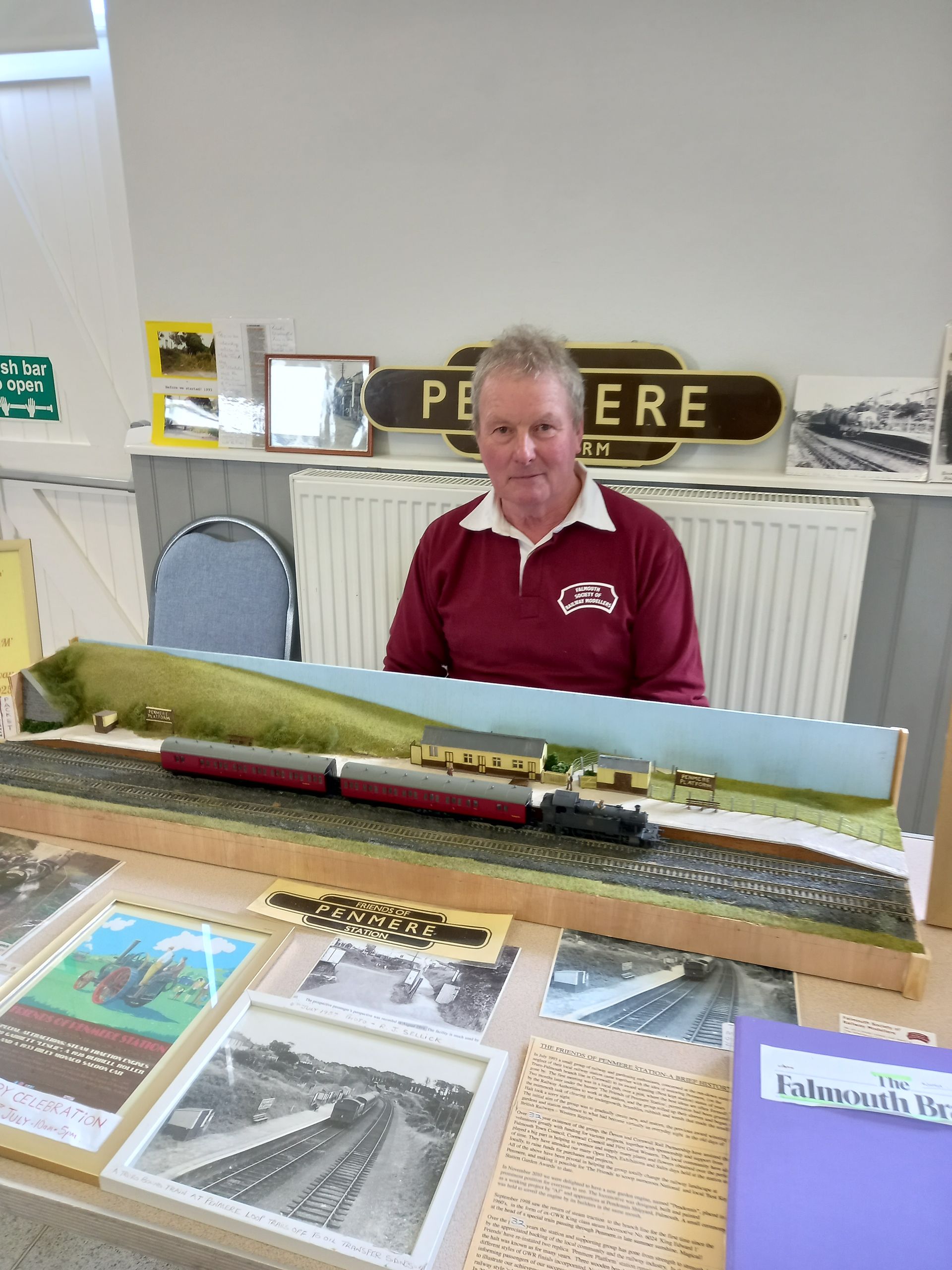 Ian Cavill pictured in front of the splendid model of Penmere Platform circa 1950's that he has constructed. Ian is a Member of the Society of Falmouth Model Railway Club.