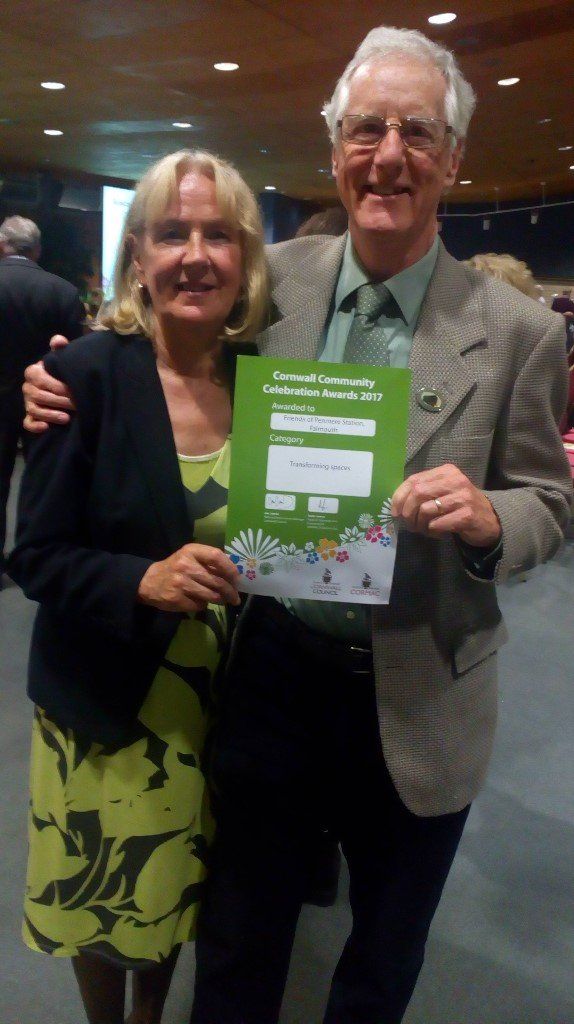Phyllis and Stephen receiving Cornwall Community Award for Transforming Spaces category on behalf of 'Friends'.