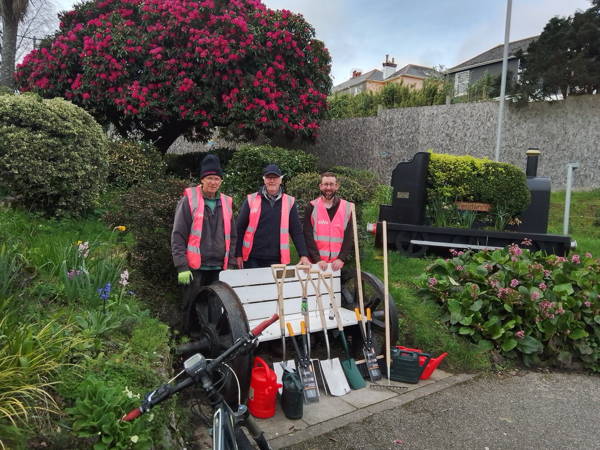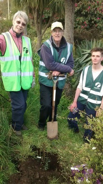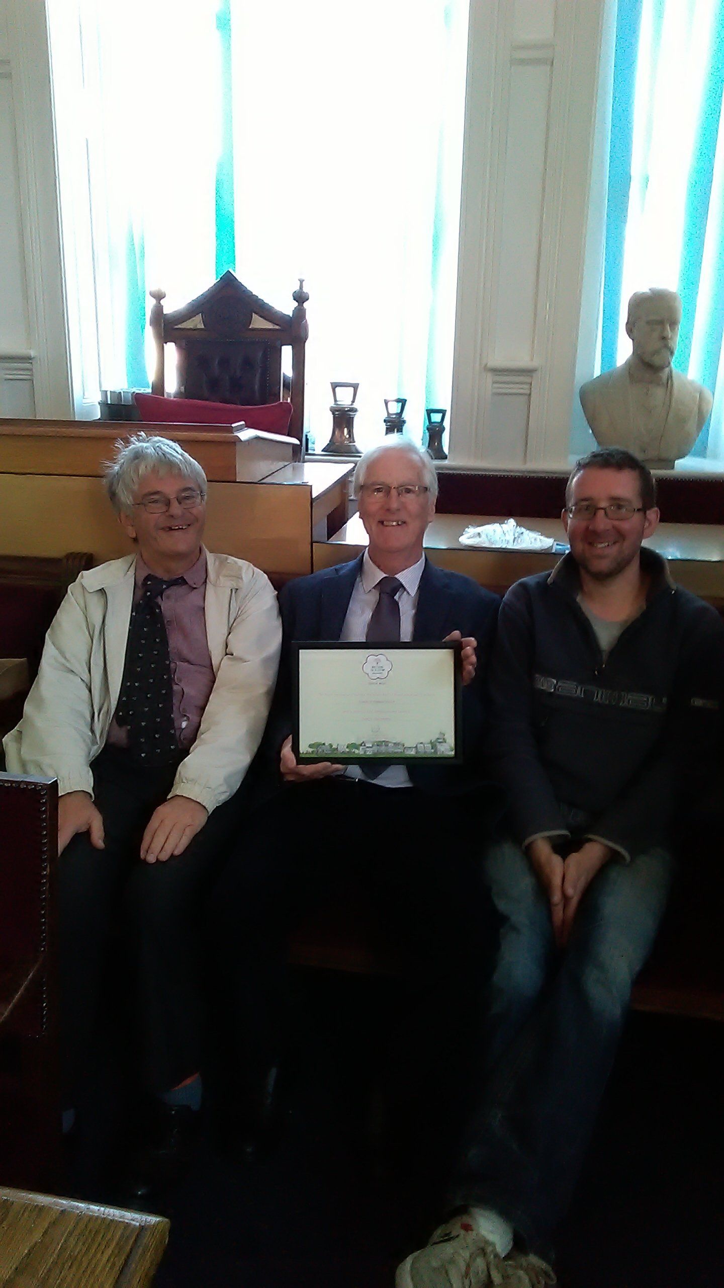John Ball, Treasurer, Steve Lloyd and new active "Friend", Daniel show off the RHS "It's Your Neighbourhood"2018 Award Certificate in the Council Chambers in Falmouth. This was presented by the Mayor, and we gained an "Outstanding" in the category.