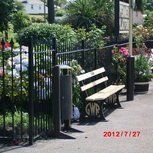 The rosebed in the carpark with plaques attached that remembers two former station railwaymen, Leonard Grose and Robert Lamport.