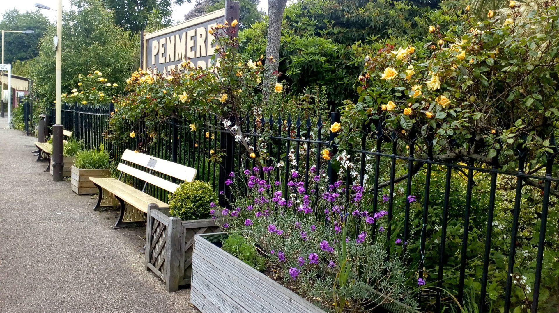 JUNE 2021. The station gardens looking great in the afternoon summer sunshine after a busy session cutting and strimming. Awaiting RHS judging.