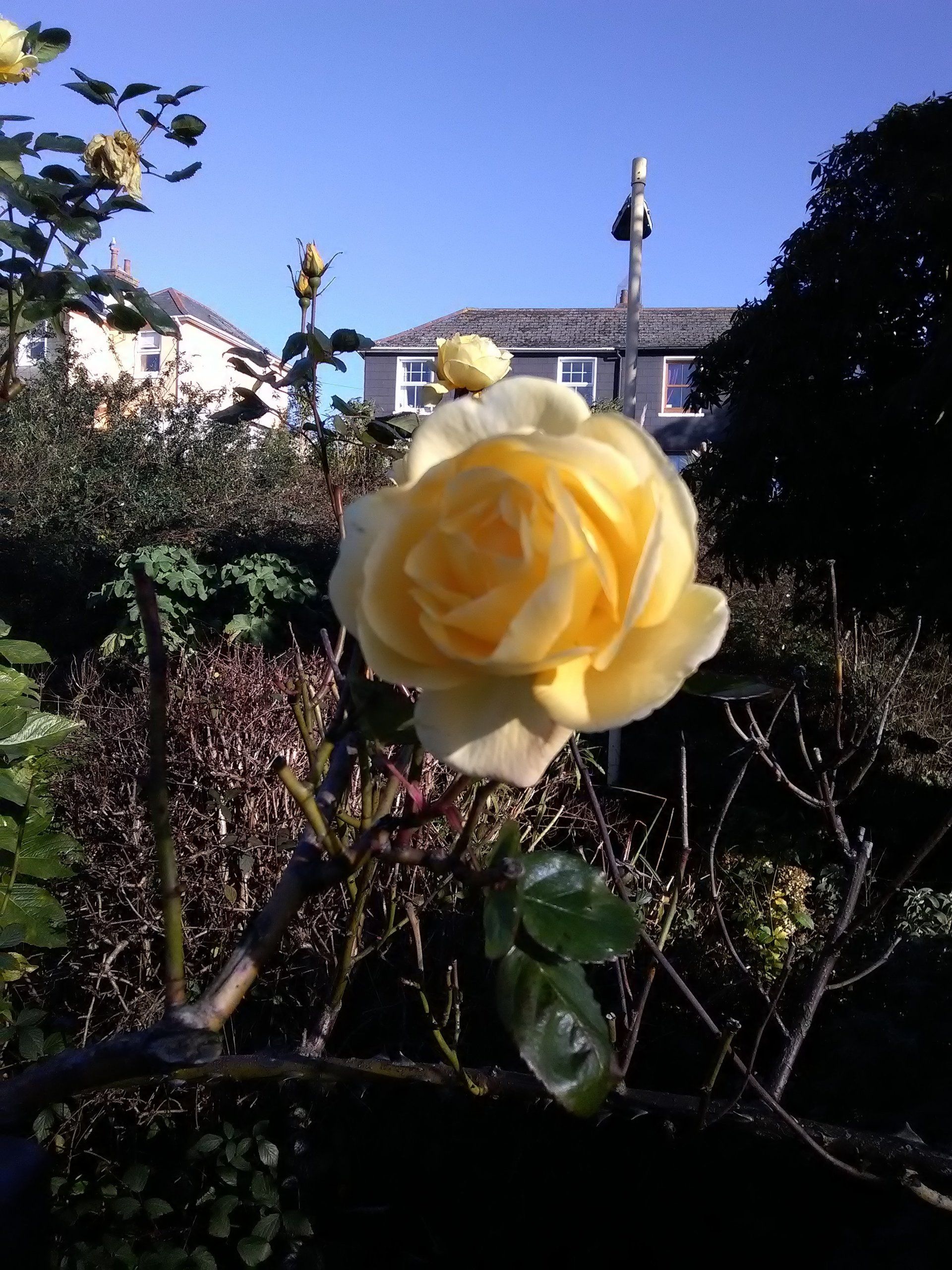 Believe it or not, fragrant yellow rose is out along the platform fence in January!
