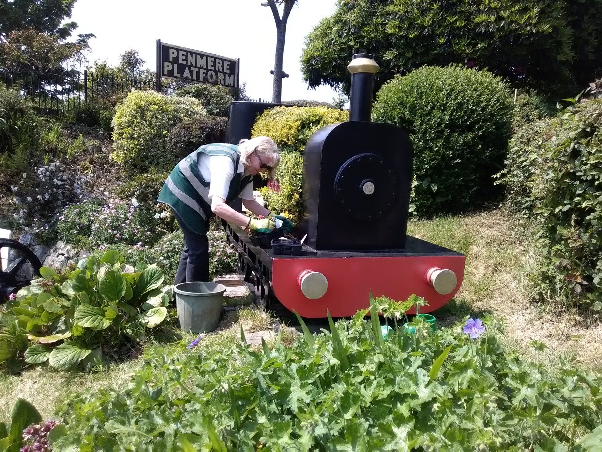 Phyllis planting up our garden engine "Pendennis", June 2018