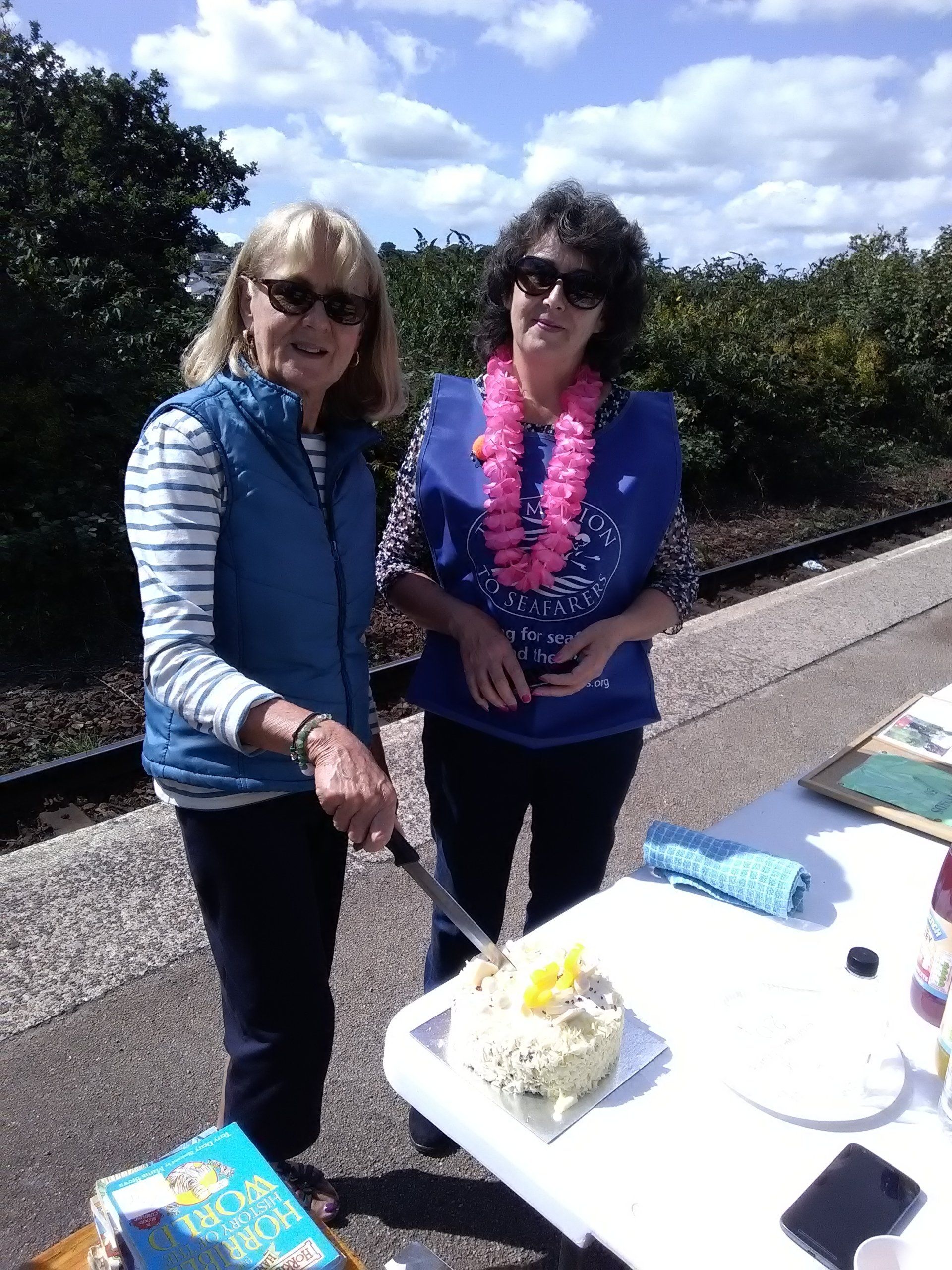 Phyllis and Sister Penny, Chairman of the Mission to Seafarers, cut the celebration cake.