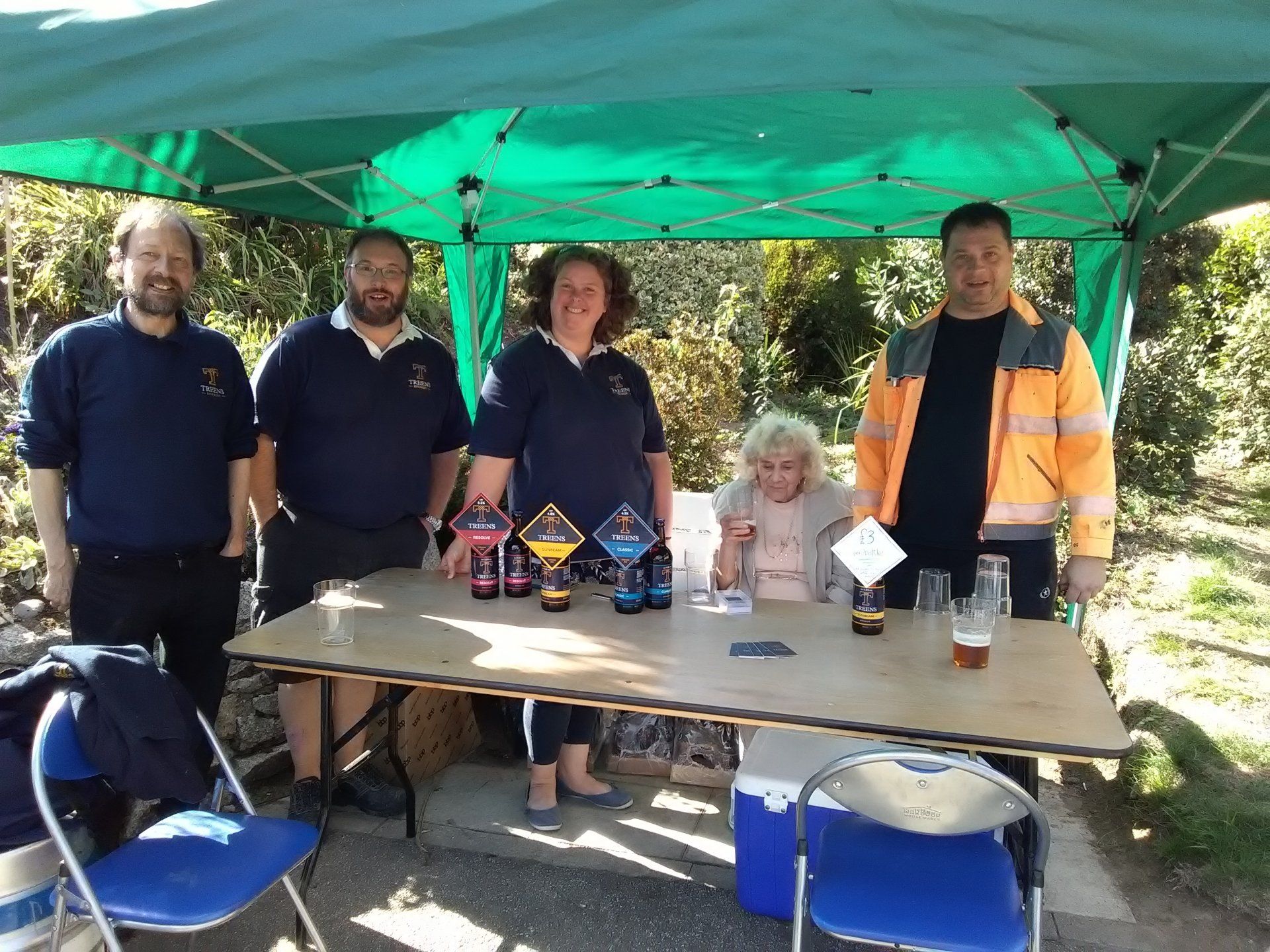 Karl and Mrs Hewlett enjoy sampling a Treens brewery beer, a local brewer.