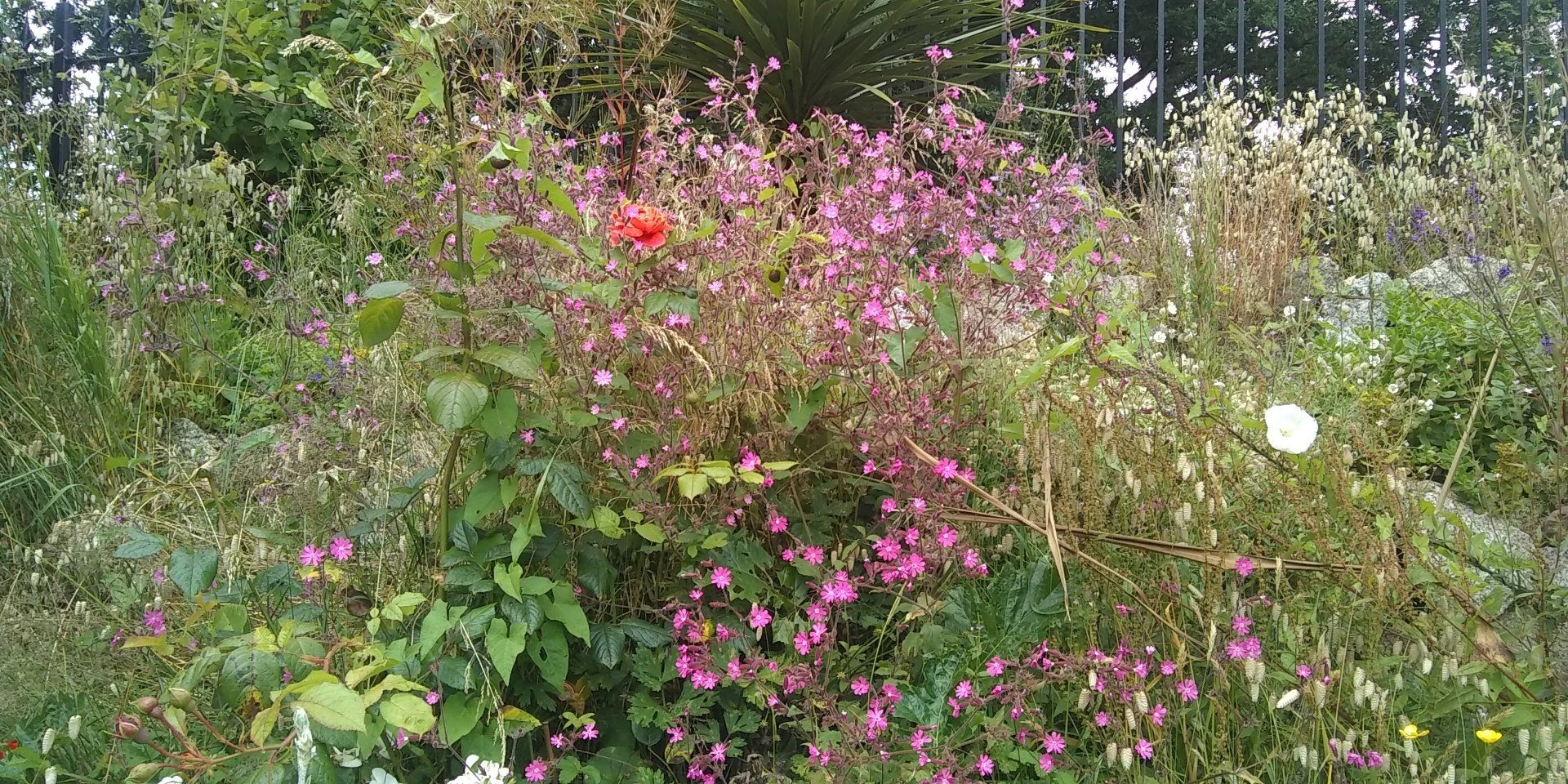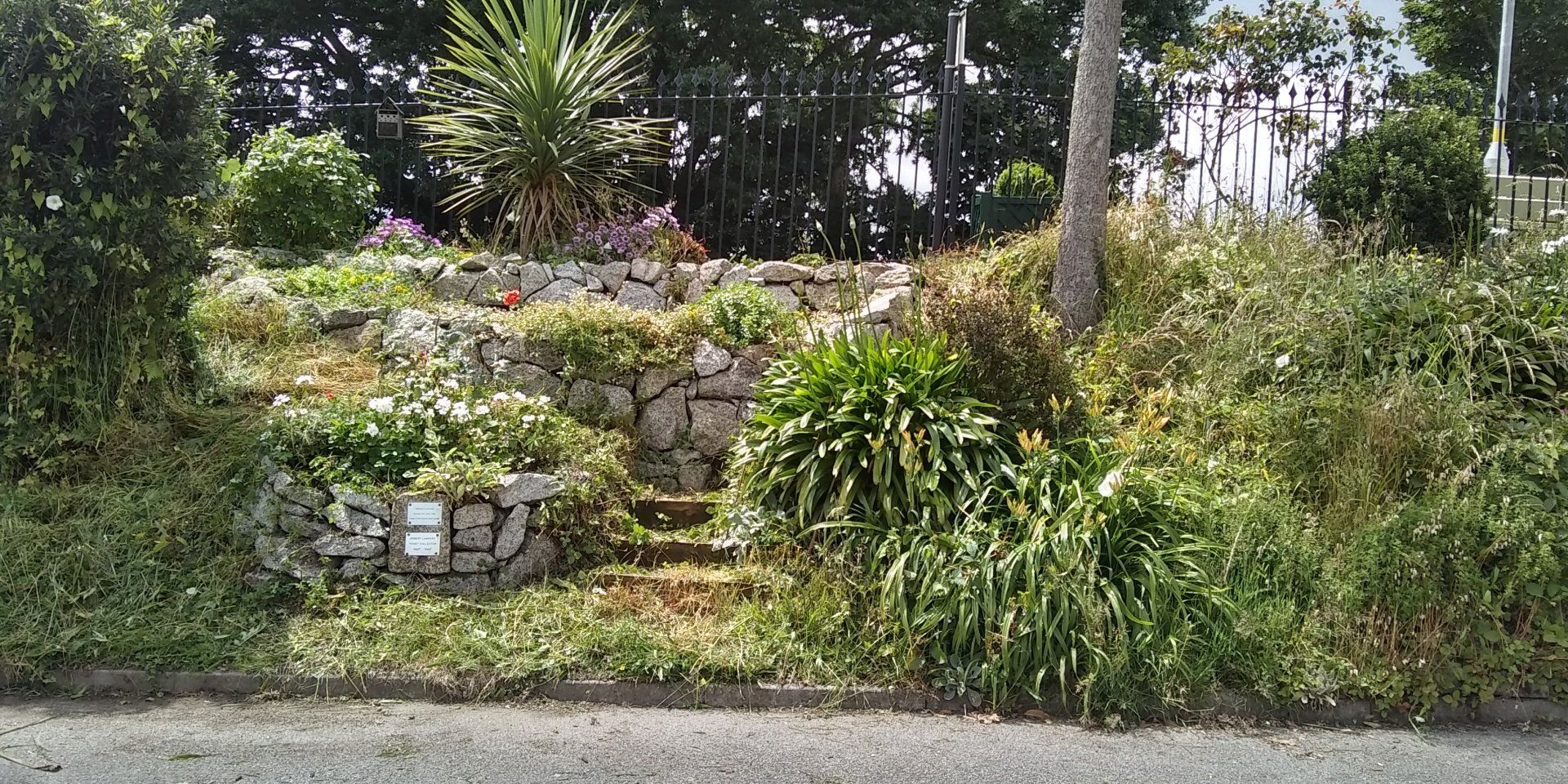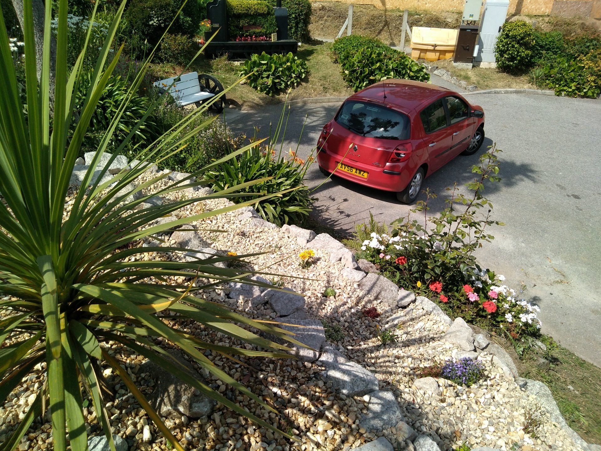 Behind the jungle somewhere is our newly built Cornish granite rockery.