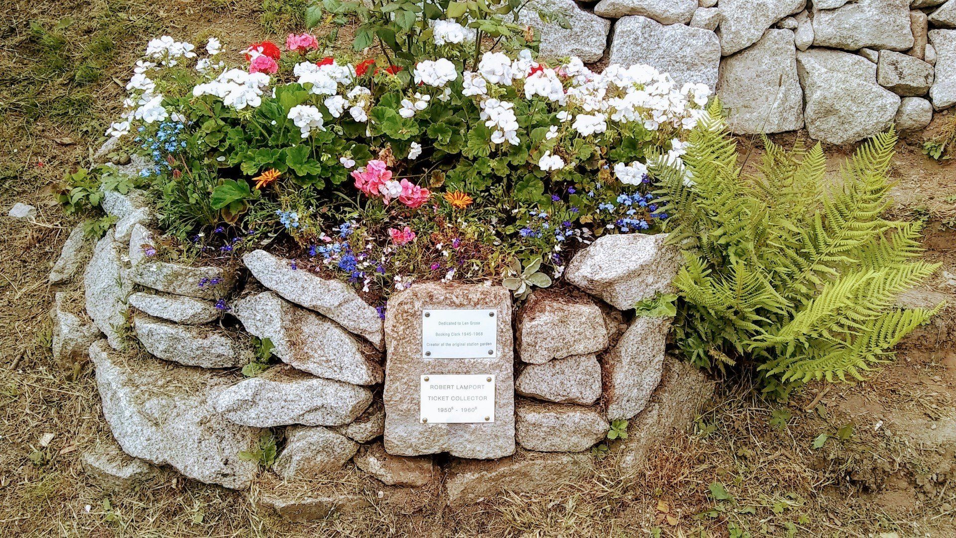 The rosebed remembering the last two station railwaymen, Leonard Grose and Bob Lamport looking spectacular.