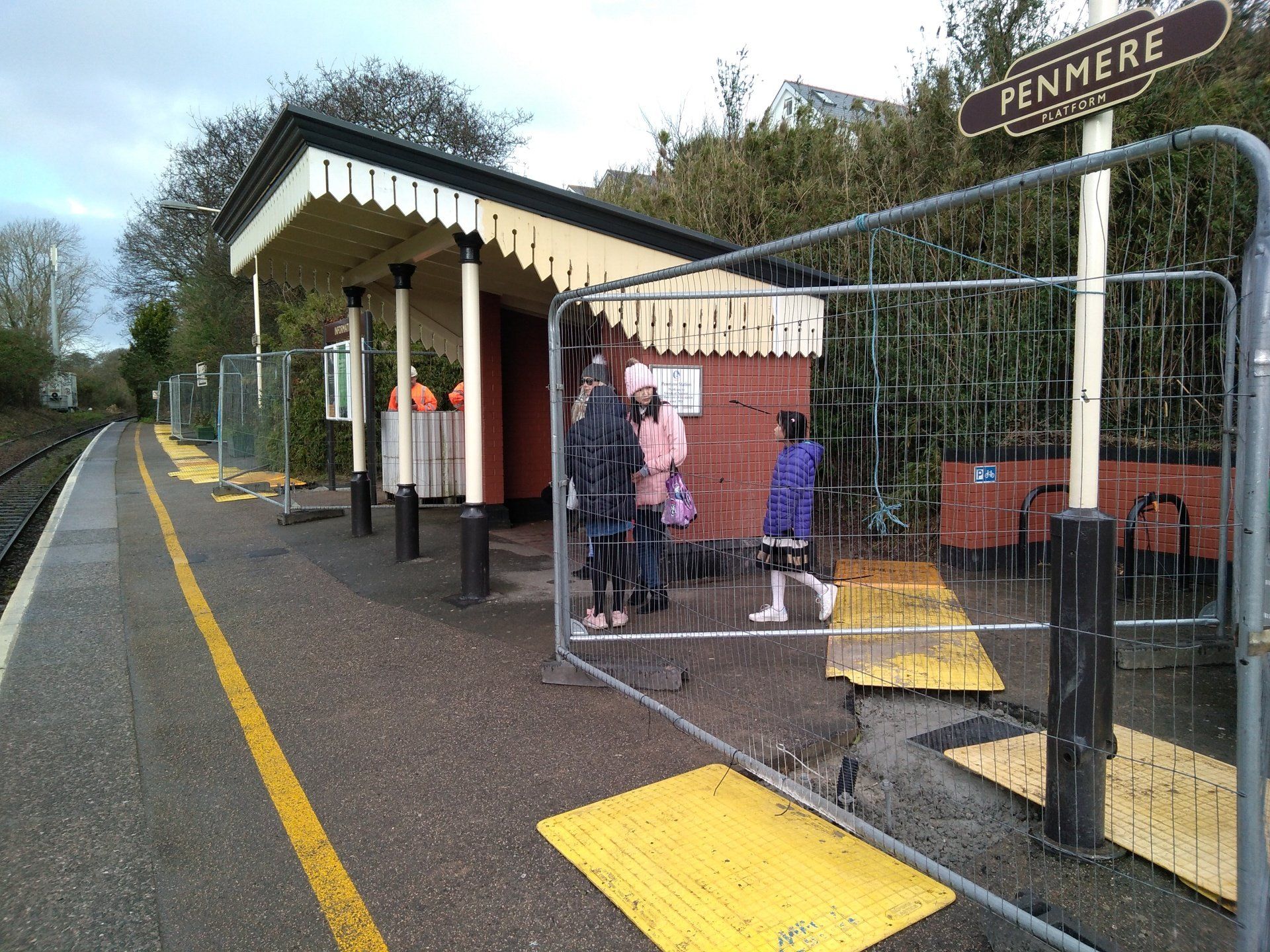 Heavy duty Network Rail alterations on the station platform.This involved digging a trench along the whole platform for new lighting cabling. February 2020.