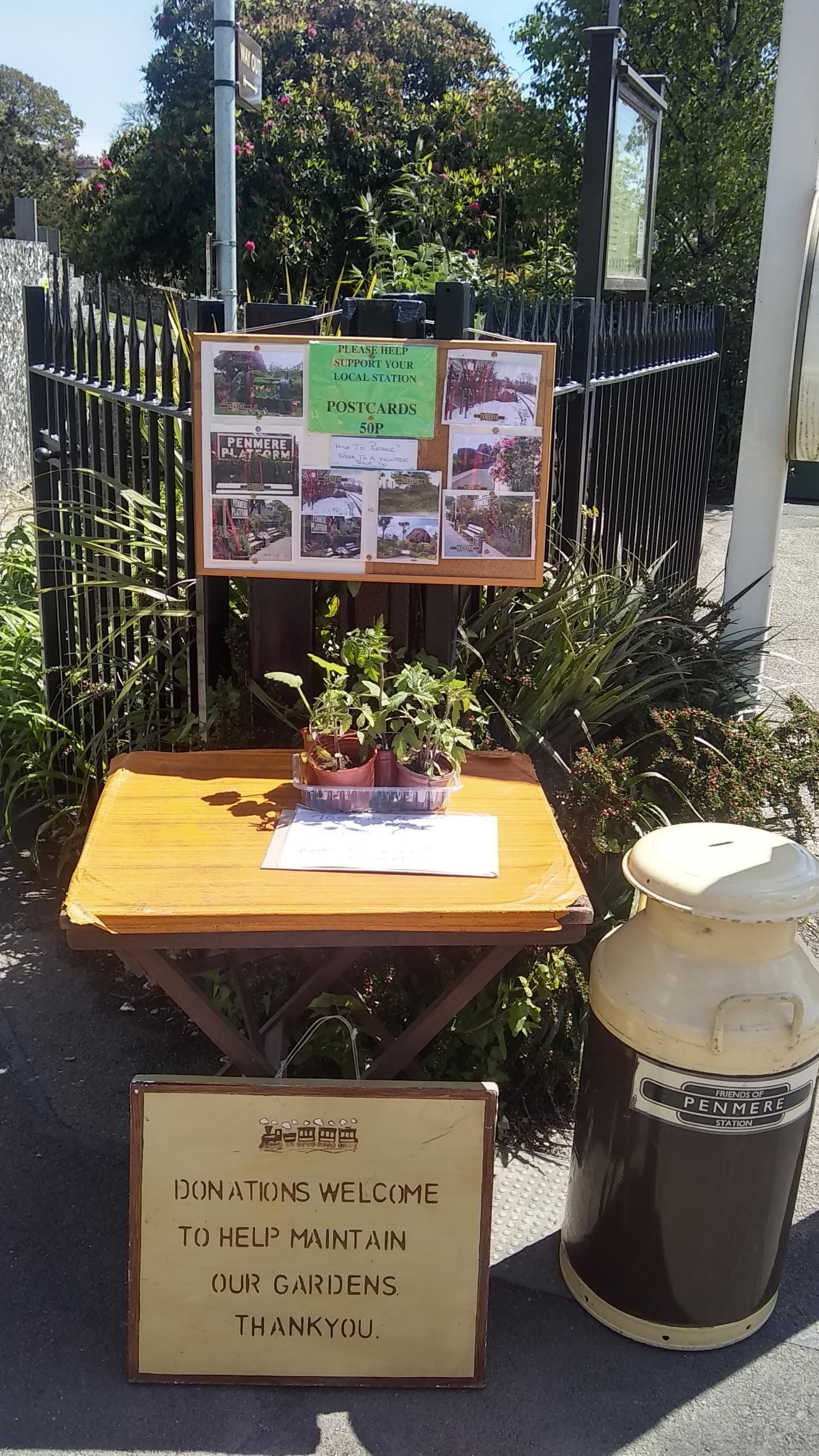 June 2021. Station postcards, plants and hopefully possibly donations in our GWR coloured churn!