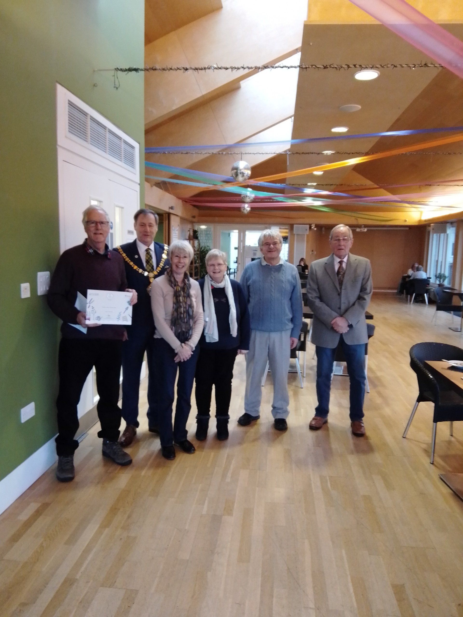 Mayor of Falmouth, Steve Eva presenting us with the South West in Bloom "It's Your Neighbourhood" award (Outstanding) 2021.