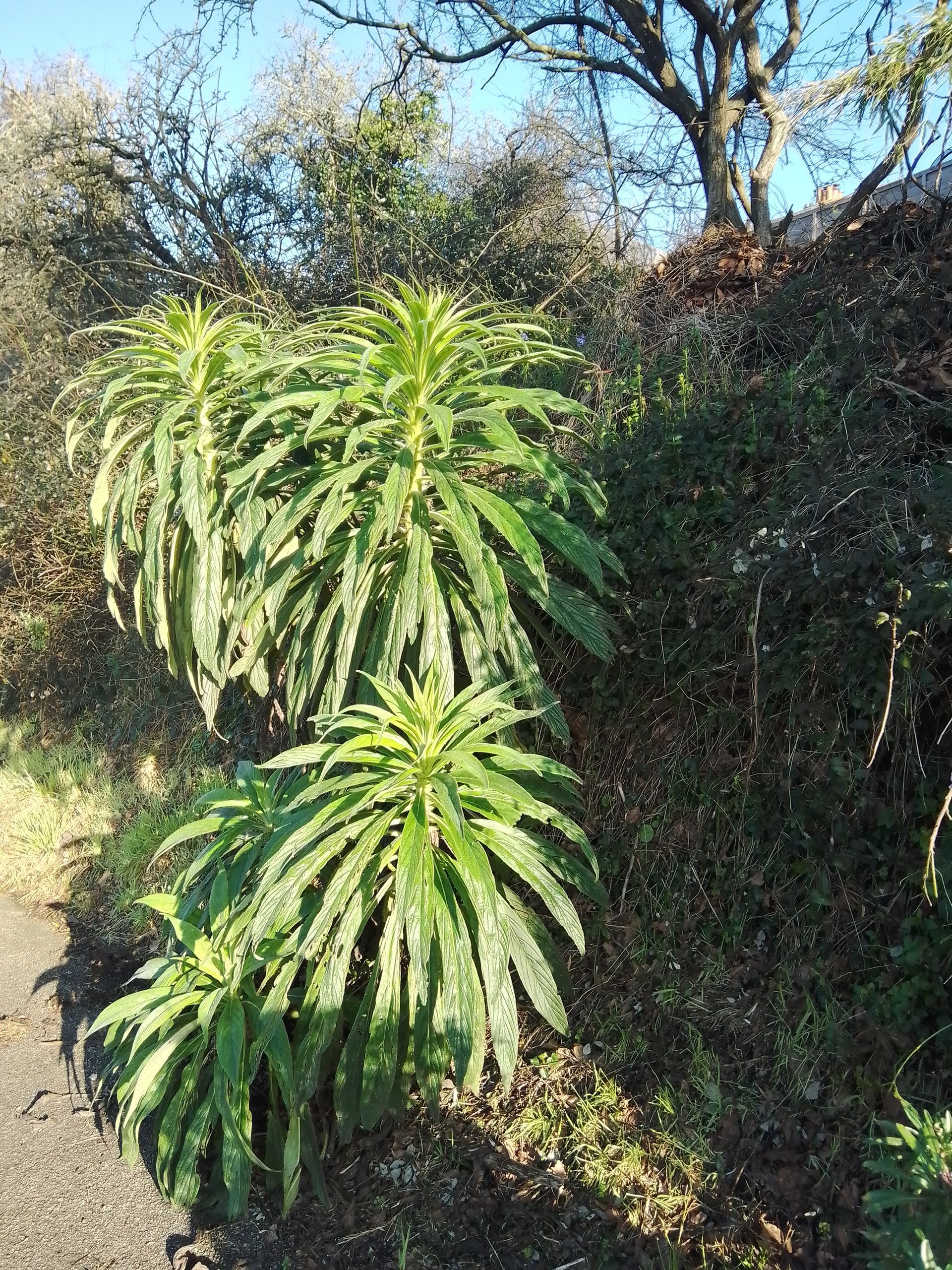 Sturdy looking Echium, which had collapsed in the Autumn, propped up and looking ready to produce tall, beautiful blooms!