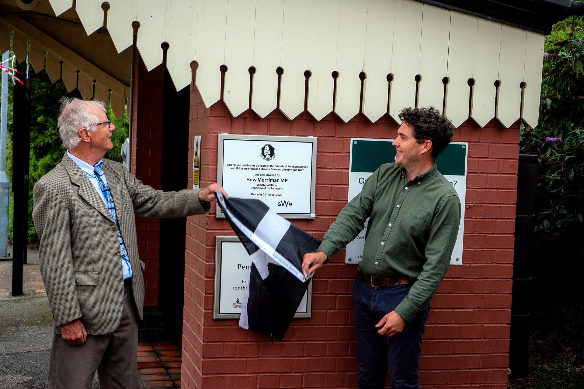 Thursday 24th August Rail Minister Huw Merriman and Steve unveil a plaque celebrating the 160th Anniversary of the branch line and 30 years custodianship of the Station by the Friends.